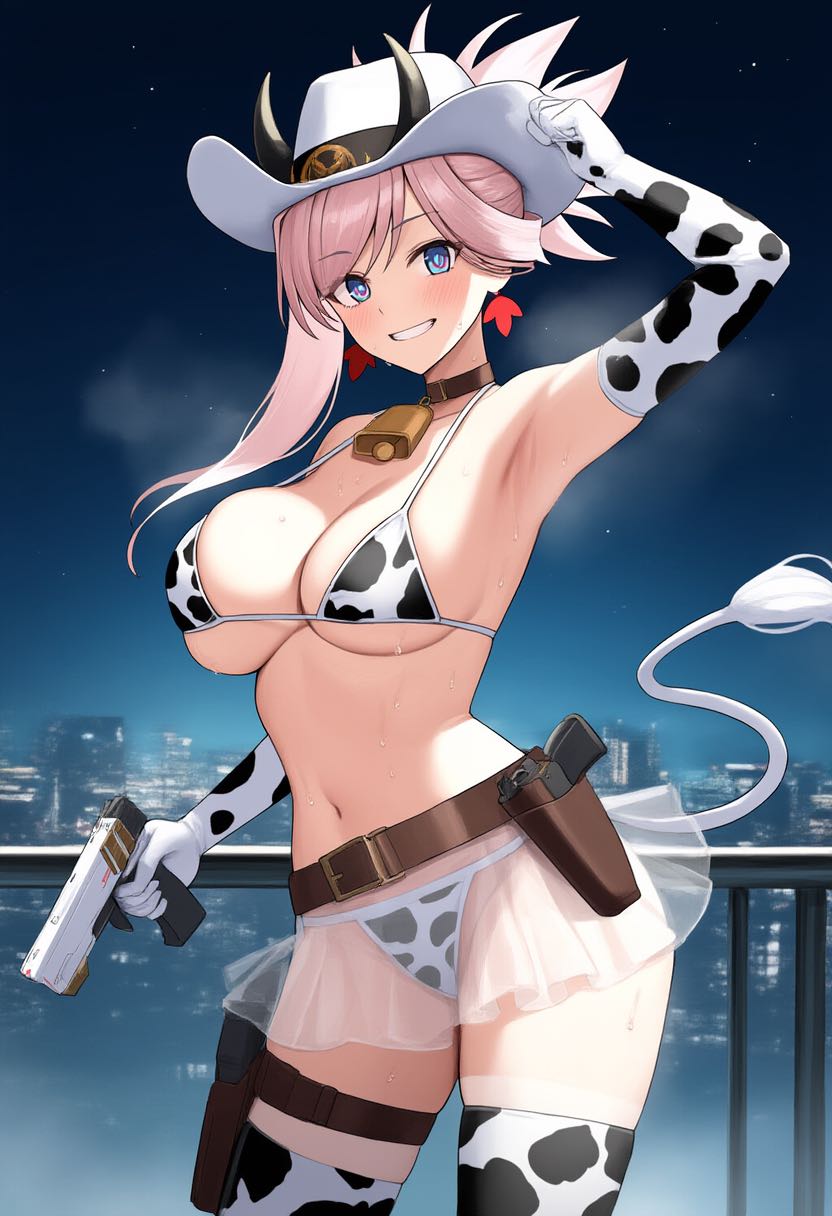 最近牛ビキニにスカートとカウボーイハット着せるとなんかソシャゲ衣装っぽくていい感じになると学んだぜ